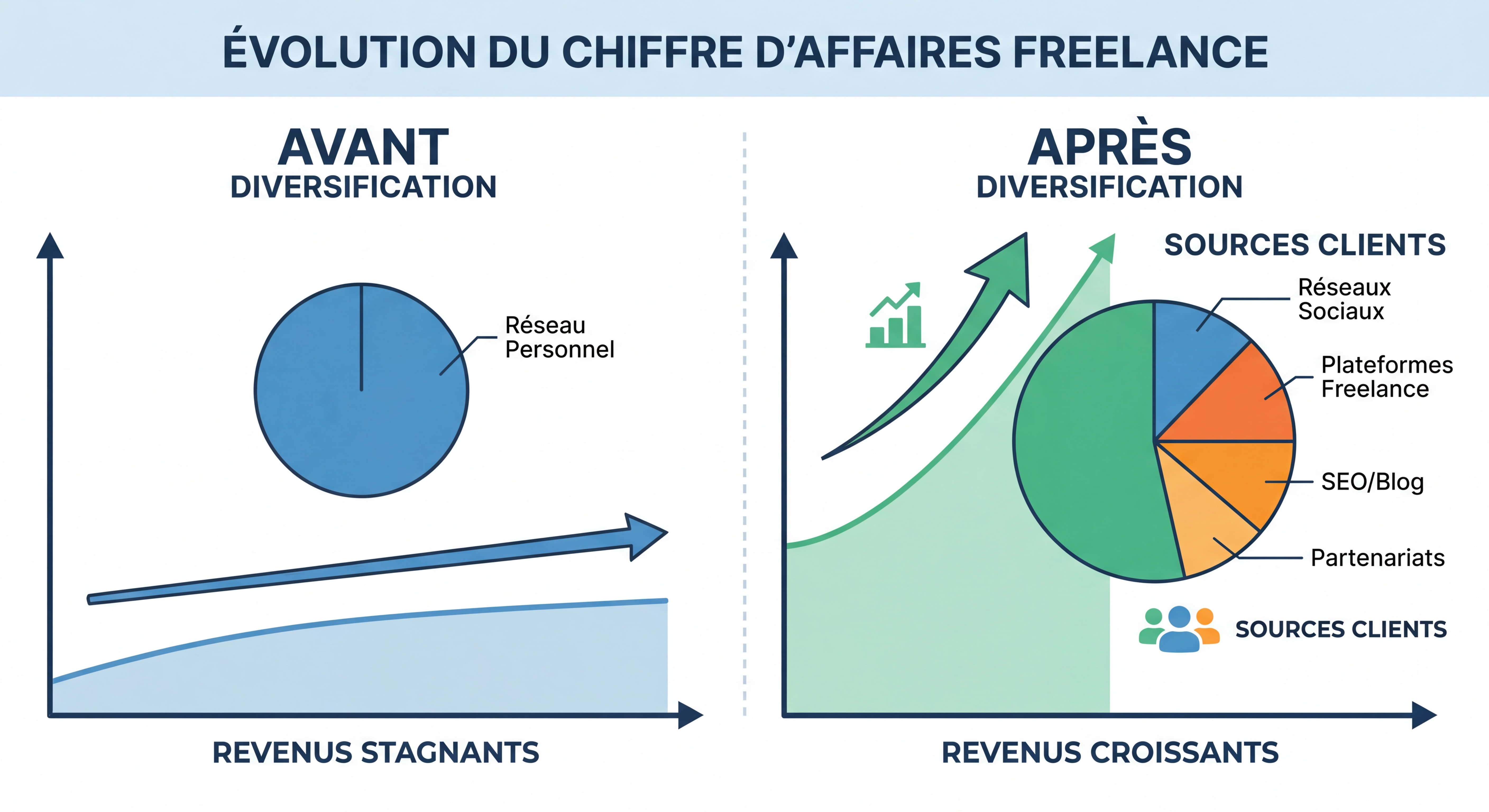 "Sophie, graphiste freelance depuis 3 ans, stagnait à 2 500€/mois. En appliquant les 5 leviers que tu vas découvrir, elle a atteint 4 200€/mois en 8 mois, soit +68% de chiffre d'affaires."